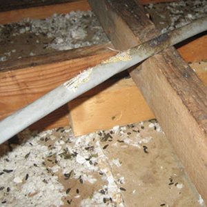 • Gnaw marks and shredded material: Chewed cables, pipe lagging, cardboard and insulation used for nesting.